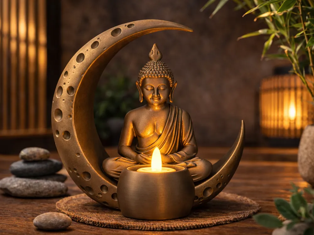 Serene Buddha Moon Tealight Holder for Tranquil Spaces
