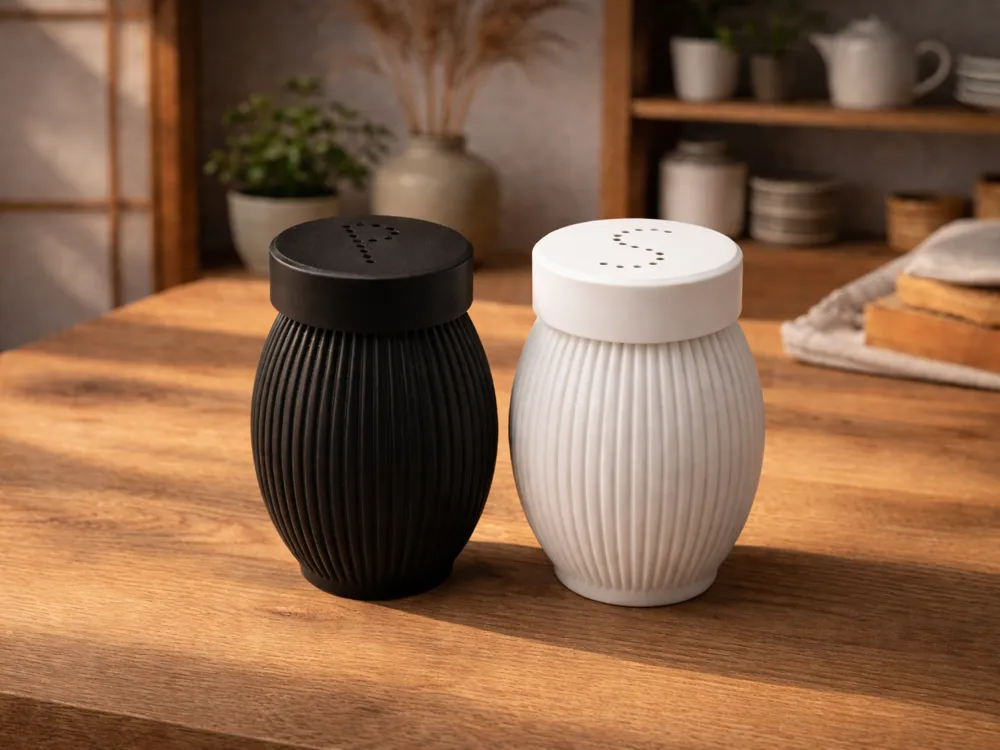 Bring calm, contemporary style to your dining table with this Japandi Ribbed Salt & Pepper Set. Designed with clean lines, soft curves, and subtle ribbed detailing, these 3D printed shakers create a warm, minimalist look that suits any modern kitchen or dining space.