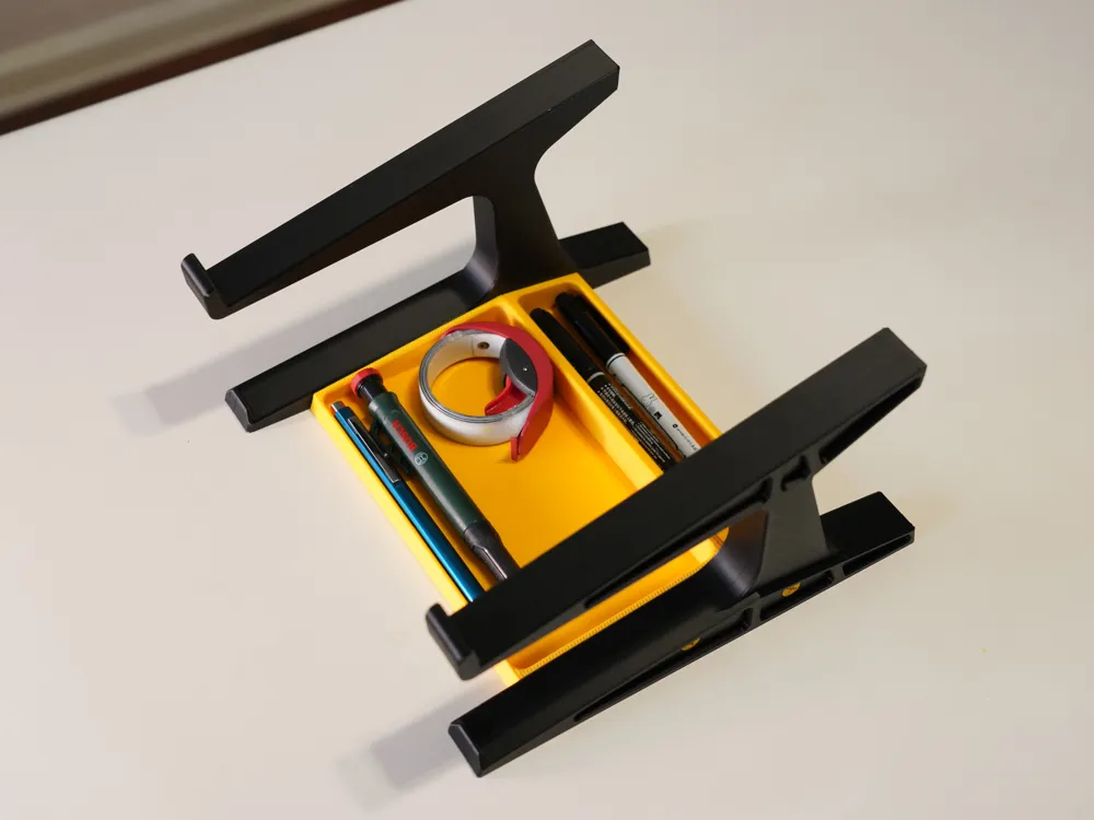 Featuring integrated trays, this stand offers convenient storage for your stationery, mouse, or other small essentials, keeping your desk tidy and organized. The sturdy construction ensures reliable support for your device, while the thoughtful design prioritizes ease of use and portability. Experience a more comfortable and productive computing environment.