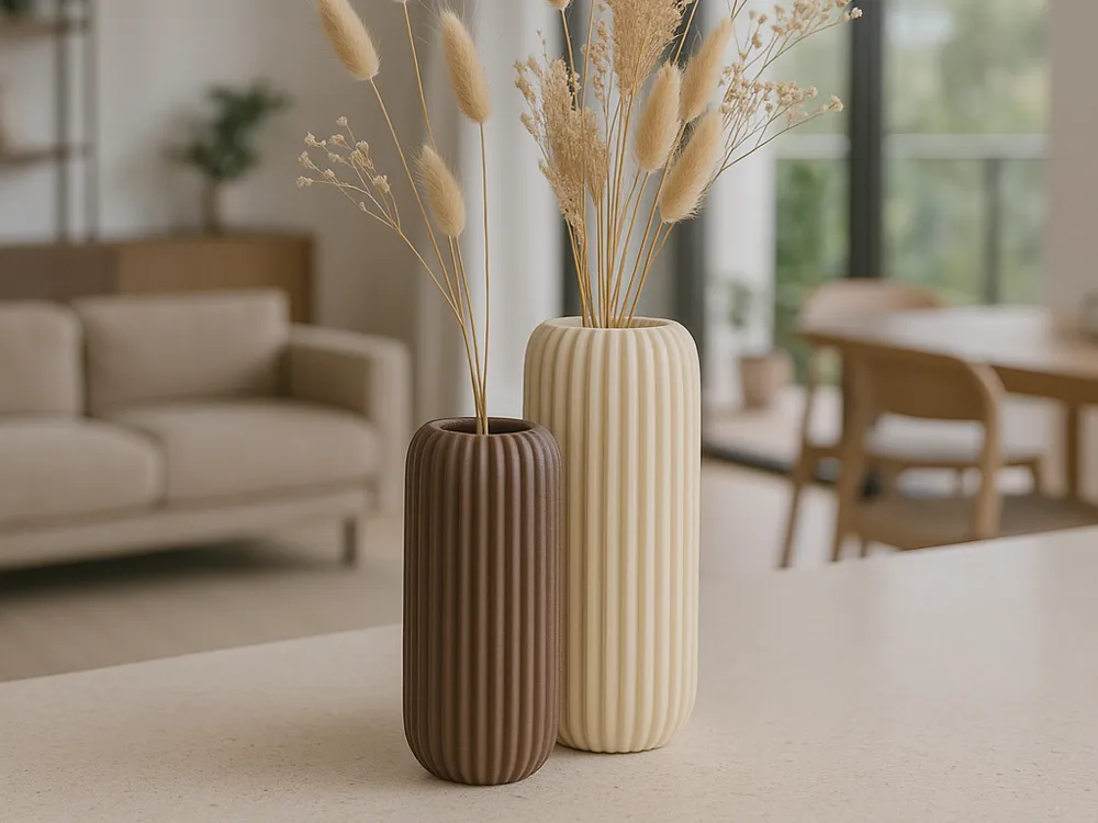Modern Ribbed 3D Printed Plant Pot & Vase – Minimalist Decor in Two Sizes
